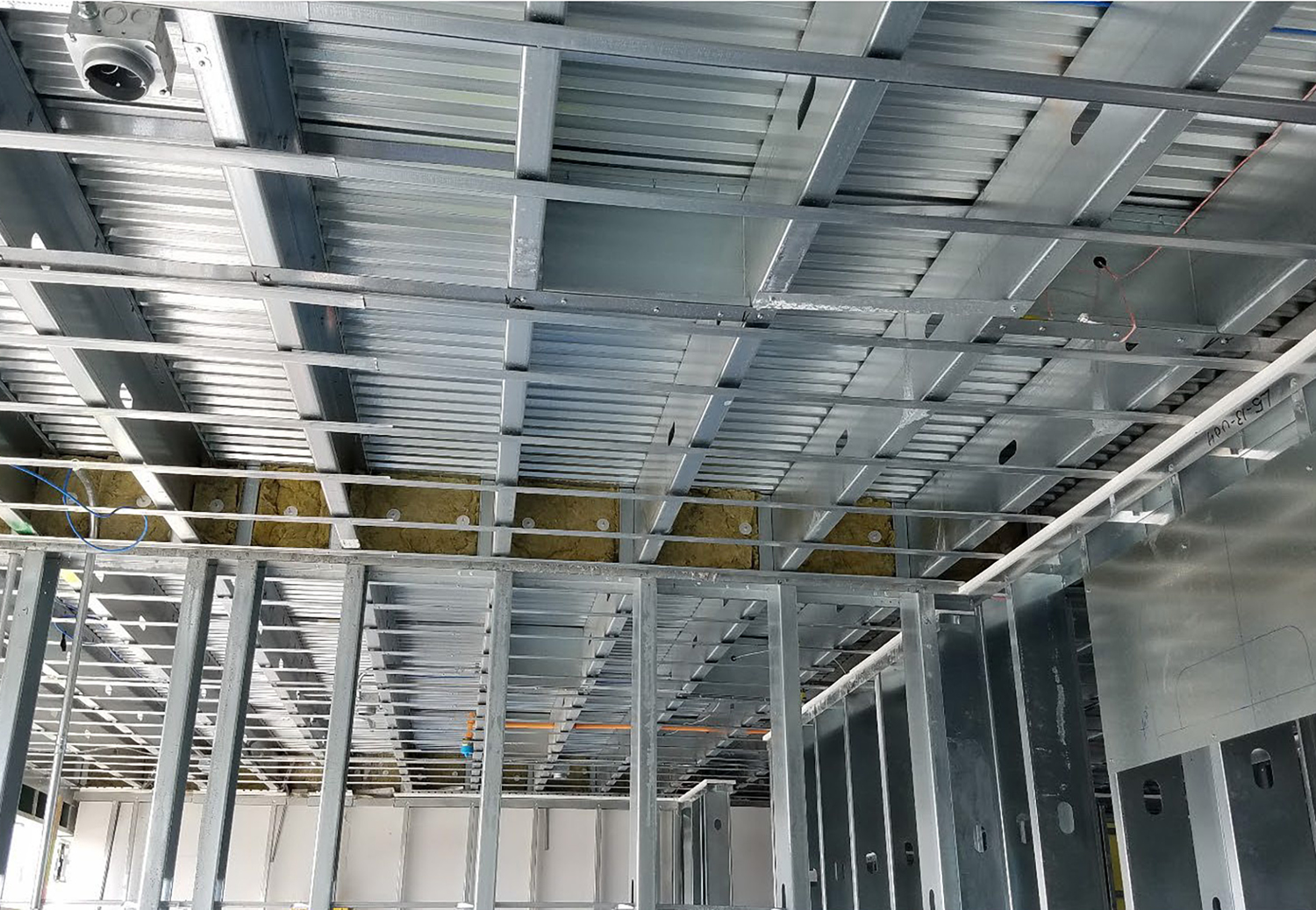 Cold-formed steel (CFS) framing at The Rosie includes both C-stud load-bearing and exterior wall framing and CFS joists.