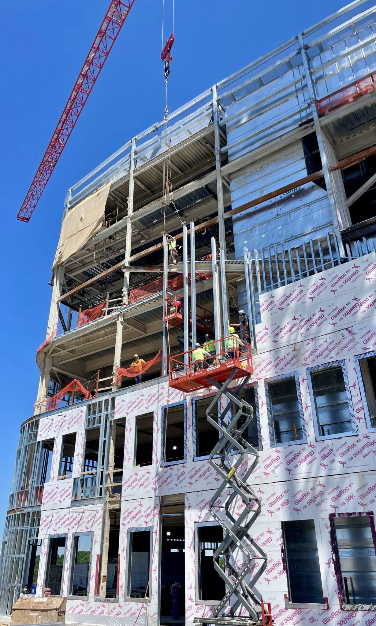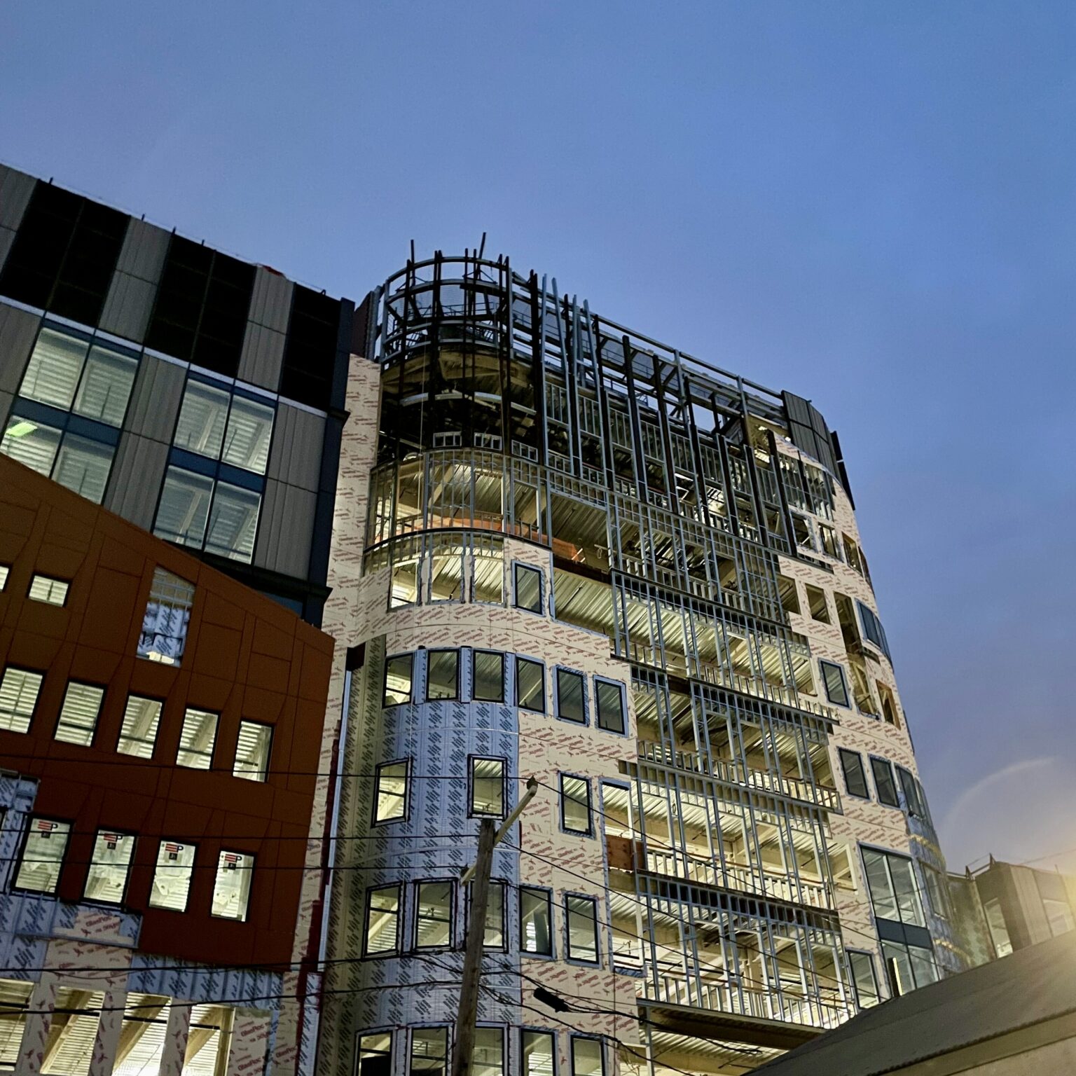 The project features 133 tons of cold-formed steel (CFS) framing, installed by specialty contractor and Steel Framing Industry Association (SFIA) member T.J. McCartney, Inc. T.J. McCartney is the 2025 SFIA Industry Project and Product Awards winner for the project, winning in the High Rise category. Jesse Vaillancourt of T.J. McCartney submitted the SFIA Awards entry.